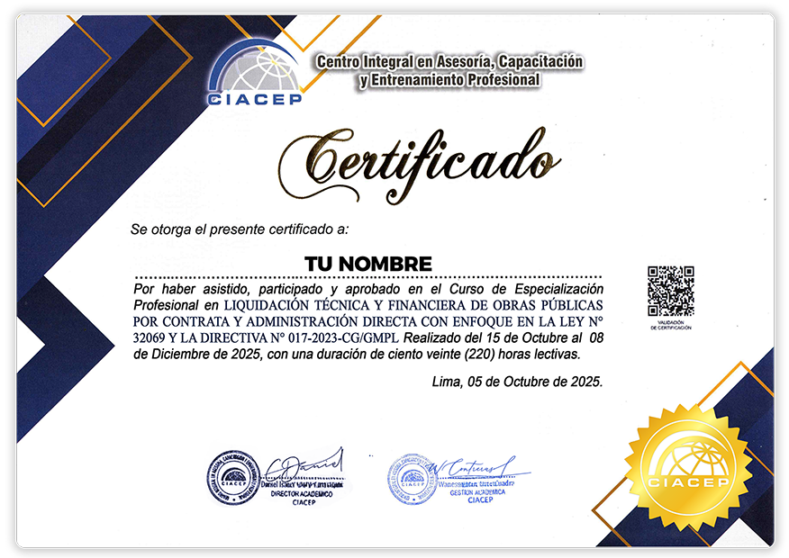 Certificación por 220 horas lectivas a nombre del Colegio de Ingenieros del Perú