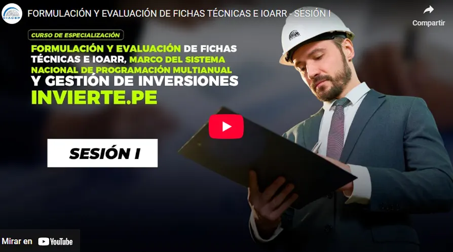 El curso brinda los conocimientos y herramientas necesarias para la correcta elaboración y evaluación de Fichas Técnicas de IOARR, según los lineamientos del Sistema Invierte.pe. Está orientado a fortalecer la gestión eficiente de inversiones públicas menores (optimización, ampliación marginal, reposición y rehabilitación).